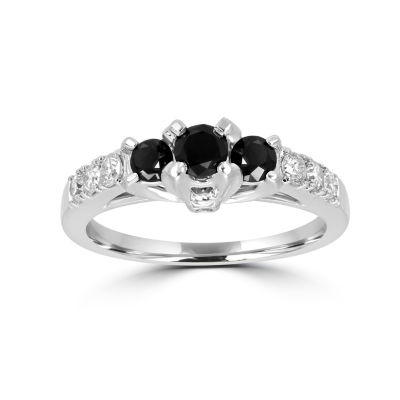 Womens 3 4 Ct T W Color Enhanced Round Black Diamond Lab Created White Sapphire Sterling Silver Engagement Ring Jcpenney